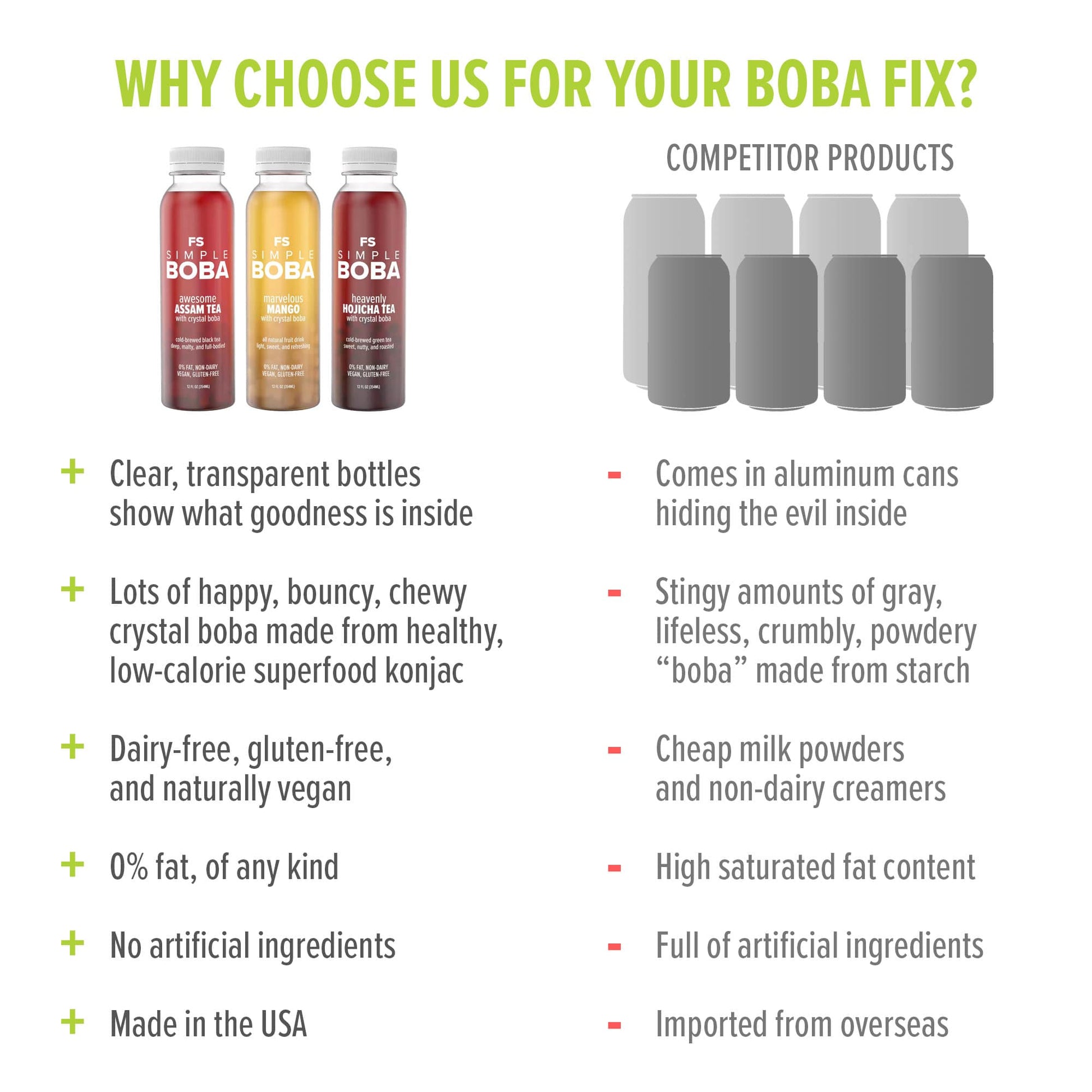 - Generous amount of yummy boba, made from konjac, a low-calorie healthy superfood and prebiotic.