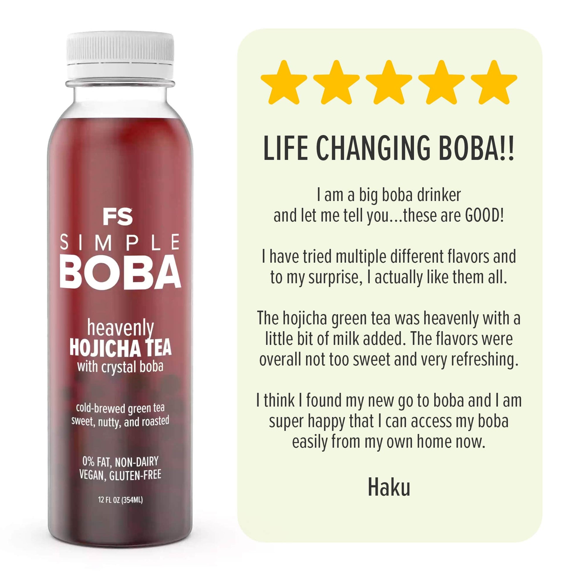 Roasted green tea, cold-brewed smooth from loose-leaf Hojicha tea, paired with our famous happy, bouncy, chewy crystal boba.